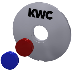 Firmenplakette weiß, mit Verschlussstopfen warm und kalt.