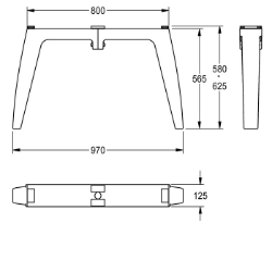 Brückenfuß zur freistehenden doppelreihigen Montage, aus kunstharzgebundenem Mineralwerkstoff, Farbton Anthrazit, für Waschrinne FUTURA exklusiv mit Beckenoberkante 700 mm. Abmessungen 125 x 565 x 970 mm (B x H x T)