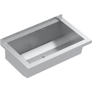 PLANOX fugenlos verschweißte Waschrinne für Wandmontage, Chromnickelstahl, Oberfläche seidenmatt, Materialstärke Waschrinne 0,8 mm / Seitenpaneele 1,2 mm, Seitenpaneele mit integrierten Wandkonsolen, ohne Armaturenbank, ohne Überlauf, 40 mm Wandzarge, Ablauf mittig, Siebventil G 1 1/2 B, inklusive Befestigungsmaterial. Ab einer Länge von 1800 mm ist eine zusätzliche Konsole im Lieferumfang enthalten. Sonderlängen auf Anfrage möglich. Abmessungen 600 x 210 x 382 mm (B x H x T)