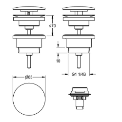 Haubenablaufventil, Schaftventil und Haube Messing verchromt, inklusive Adapter zur Umrüstung auf Klickverschlusshaube, Anschluss G 1 1/4 B.