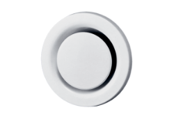 Tellerventil für Abluft, Stahlblech einbrennlackiert weiß, mit Einbaurahmen, DN 150, für Wohnungslüftung max. 150 m³/h (Bitte Druckverluste und Schallwerte beachten)