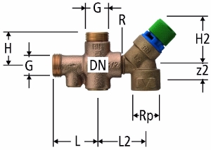| DN | Rp | R | G | z2 | L | L2 | H | H2 | Kvs | Grösse | Art.-Nr. | VE | suissetec |